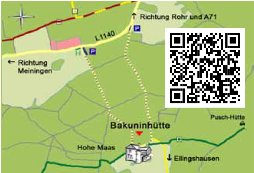 Die Bakuninhütte liegt außerhalb Meiningens (nutzen Sie auch folgende Wegbeschreibung):